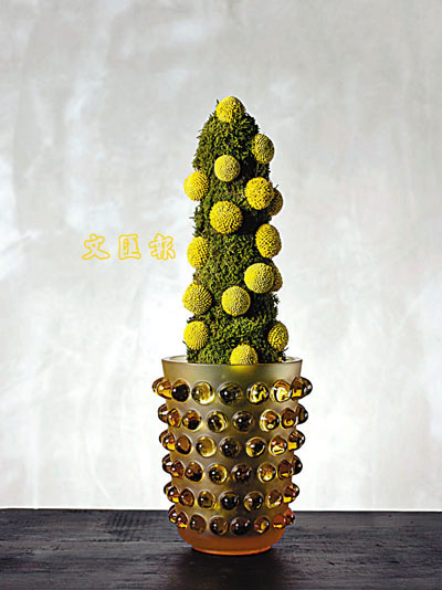 Mossi花瓶的經典設計,跟象徵母愛的台蘚和金杖球,配合得天衣無縫。(b)花瓶售價:$26,000