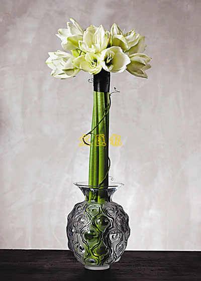 透徹的水晶,加上藤蔓蜿蜒的設計,更能凸顯桂頂紅的清新脫俗。(b)花瓶售價:$13,750