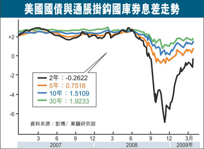 筆者於去年8月,即金融海嘯發生之前,表示美國經濟毫無疑問地已進入衰退,通脹風險名存實亡,故告誡投資者規避與通脹掛鉤債券 (TIPS)有關的資產。數月後,美國國家經濟研究局(National Bureau of Economic Research)表示,美國經濟從2007年12月起已步入衰退,意味著自01年11月起,長達73個月的經濟擴張期已結束。不過,筆者相信隨著美聯儲不斷印錢救經濟,短期通縮、長期通脹之局已成,意味著美國通脹掛鉤債券的投資價值或再現。 ■東驥基金管理