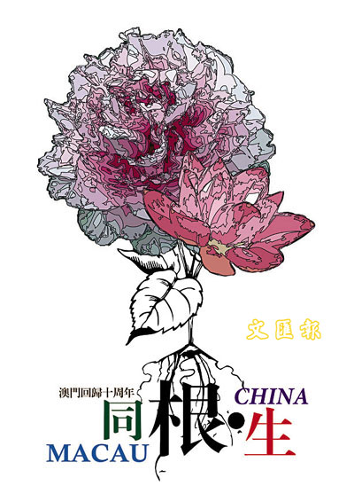 ■澳門學生陳嘉盛的參賽作品《牡丹與蓮花》,描繪了「國花」與「區花」,充分體現兩地緊密聯繫。 本報北京傳真