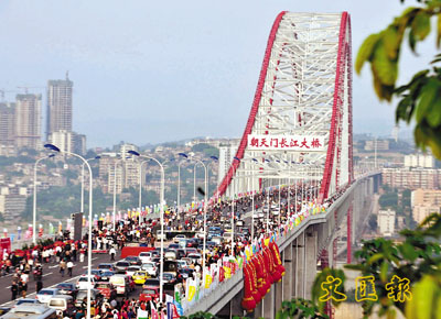 ■內地31省市一季度經濟盤點數據出爐,中西部地區成績令人「眼前一亮」。圖為中西部的重慶市朝天門長江大橋昨日通車。 新華社