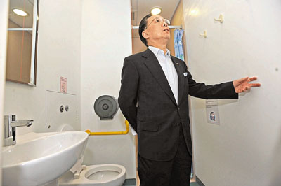 ■曾蔭權昨午視察瑪嘉烈醫院傳染病中心,更走進廁所詳細觀察。