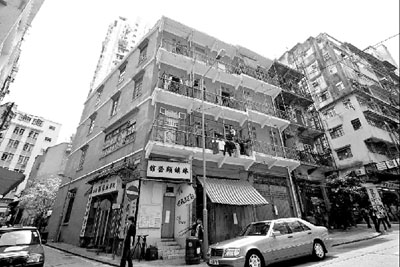 ■灣仔石水渠街72至74號的建築外牆因早年被髹上藍色,故又稱藍屋。其旁74A號的業權人已故多年,政府終動用《收地條例》收回業權。 發展局圖片
