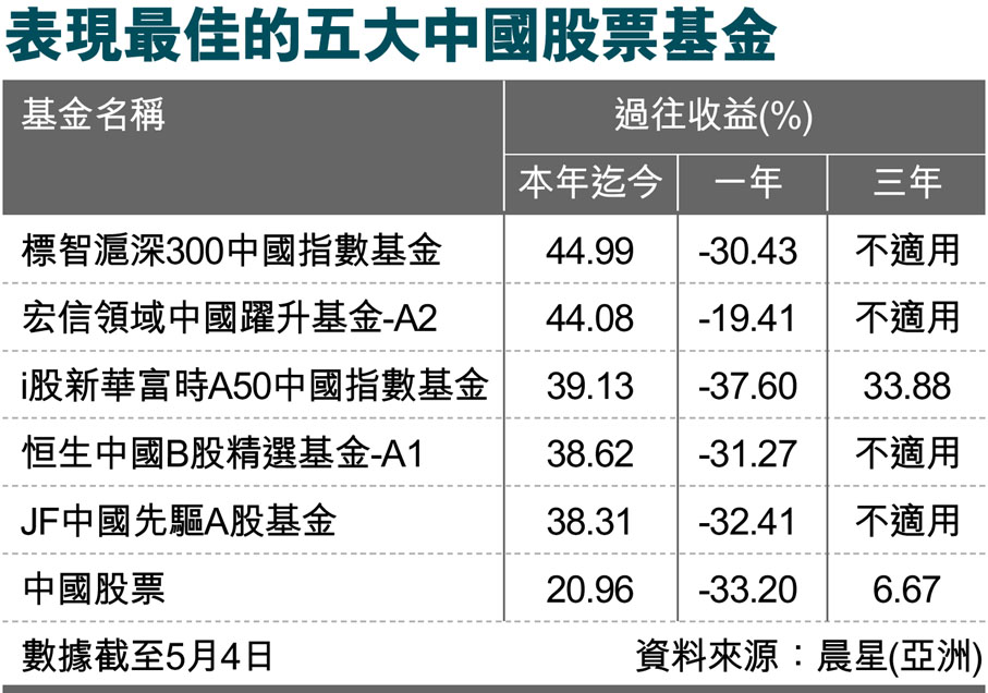表現最佳的五大中國股票基金 (2009-05-06) (圖)