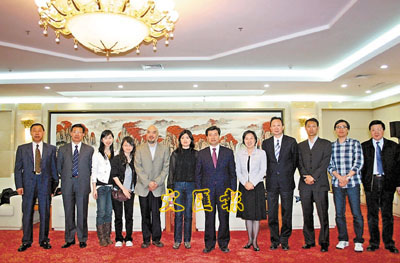 ■自治區主席王正偉(左七)會見港澳媒體采風團並合影。