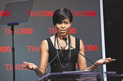 《時代》雜誌每年一度的「最具影響力百人」選舉,其09年名單上星期已公諸於世,一如以往相隔一星期後才舉行慶祝晚會,吸引許多名人參加,包括內地女星章子怡。作為新入圍分子,美國總統夫人米歇爾的受注目程度不下於丈夫奧巴馬,當她致辭時談及以巨款造益社會,望能協助非牟利團體促進國家事務,言詞得到世人認同,就知站在總統背後的女人並非只是社交花瓶。