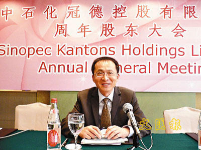 在談到未來中石化冠德的業務發展時,李文平表示,去年該公司舉行的股東特別大會已經通過該公司向母公司出售一幅地塊供其發展原油商業儲備項目,中石化冠德亦可參與其中,為該項目提供服務,希望有關項目可為其增添新的業務增長點。但是,由於出售土地需要得到地方政府的批准,而目前有關申請還未獲批。他並透露,出售有關土地該公司可獲得1.5億元的收入,並錄得特殊盈利約5000萬元,但未知有關特殊收入今年能否入賬。