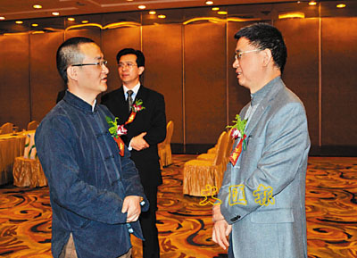 民政部社會福利與慈善事業促進司司長王振耀(右)與中國慈愛園執行主任蔣覺成(左)親切交談
