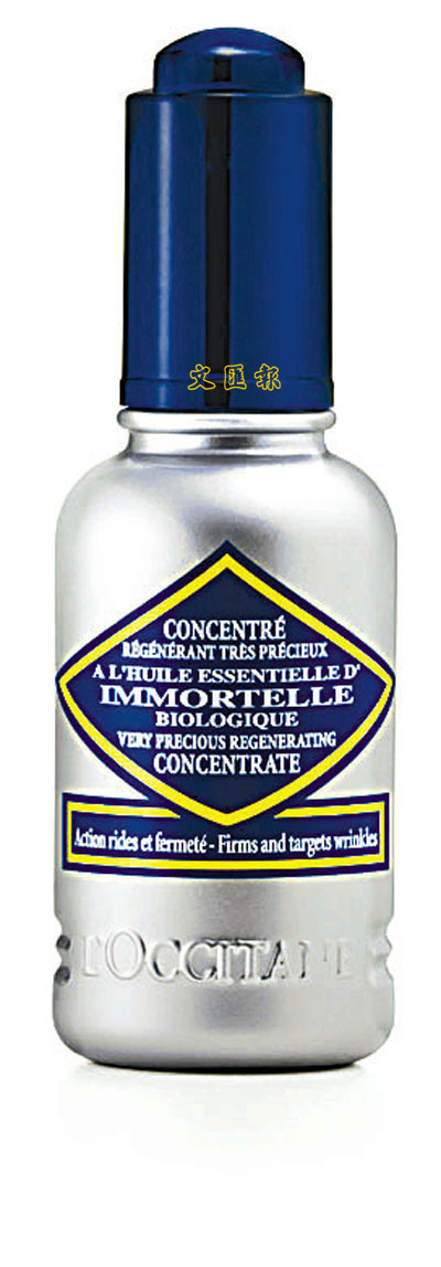 ■L'OCCITANE蠟菊更生活膚晚間精華素Immortelle Very Precious Regenerating Concentrate,當中的精華油,全部屬有機產品。可於晚間對肌膚作出修復,促進細胞的新陳代謝,提高肌膚的緊實感。