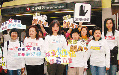 公共交通工具非禮問題嚴重,關注婦女性暴力協會於2月訪問262名女性,發現23.3%受訪女性表示,過去一年在乘搭公共交通工具時曾遭非禮,而港鐵為高危區,佔80.3%,巴士次之。在曾被非禮的受訪女性中,57.4%指被人用色迷迷眼光「定焦」觀看,49.2%被人故意挨近,甚至有部分人目睹侵犯者在她們面前自摸下體等。