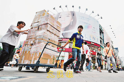 ■中國社會消費品零售總額一季度同比增長15%,但4月份CPI和PPI雙雙下降,表明很可能新的過剩產能壓力正在加大。圖為廣州商業街。新華社