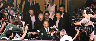 ■陳振聰昨日出席龔如心遺產案審訊,離開法院時,被大批傳媒包圍。 本報記者梁祖彝 攝