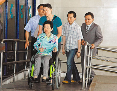 ■陳水扁夫人吳淑珍11日在兒子陳致中陪同下,前往台北縣立醫院板橋院區,探視戒護就醫的陳水扁。中央社
