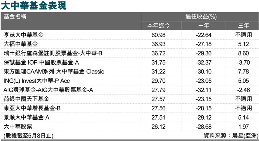 (數據截至5月8日止) 資料來源:晨星(亞洲)