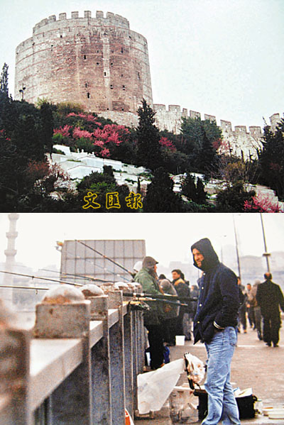 ■(上圖)倚山而建的棉花堡別具氣勢。(下圖)有不少人站在加拉達橋上釣魚。