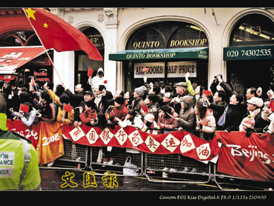 ■中國銀行倫敦分行員工迎接奧運聖火