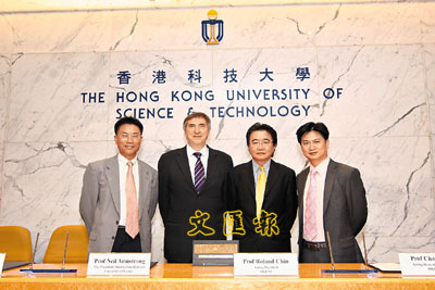 英國艾賽司特大學(University of Exeter)與科大日前簽訂合作協議,加強兩校學術合作和交流。圖左起為商學院院長鄭國漢、艾賽司特大學副校長尼爾.阿姆斯特朗、科大首席副校長錢大康及工學院副院長吳宏偉。科大提供圖片