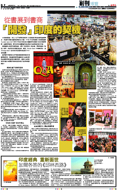 當16,000家出版社,每年以23種語言發行8萬種圖書的成績展現世人面前時,印度立即成為繼英美之後的第三大英語出版國,也是英文出版增長最迅速的國家。倫敦書展的籌辦者可算有真知灼見,但與法國相比也不過後見之明:早在06年,法蘭克福書展、世界最大版權交易會以及法國巴黎書展,都已經打出「今日印度」的主題,展示既具古老色彩,又具現代活力的印度文明。有法國這文學思潮產生與傳播的大國為濫觴,對岸只好再下一城;同時,印度新銳輩出,四處掃獎,足以見得,他們的投資將快有回報。
