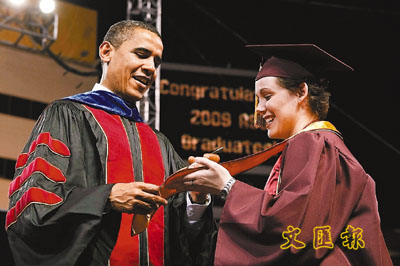 ■奧巴馬在美國亞利桑那州大學主持畢業典禮。 路透社