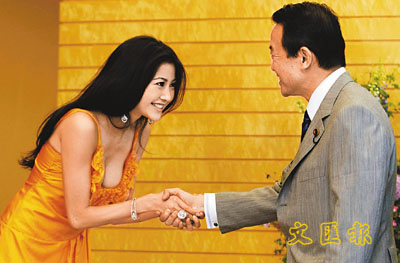 麻生太郎昨日在官邸接見了今年參加世界小姐選美大賽日本佳麗宮阪繪美里,官阪表示,首相給人的印象是「很時尚」。 路透社