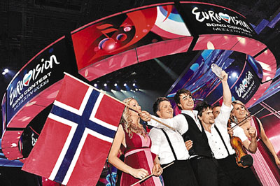 每年一度的歐洲歌唱大賽(Eurovision),09年冠軍終在多場比賽後誕生,那便是擅長拉小提琴的23歲挪威青年Alexander Rybak(左三)。出身自白俄羅斯的他,自行創作一首受民歌影響的抒情曲《Fairy Tale》,結果獲得許多人讚賞拿到史無前例的387分,壓過冰島和阿塞拜疆的強敵於莫斯科會場登頂。挪威方面亦為此舉國慶祝。 ■文:哈樂/圖:法新社