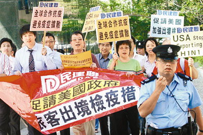 ■民建聯10多名代表昨到美國駐港領事館請願,希望總領事唐若文轉達港人憂慮,並加強當地出境檢疫。 本報記者潘政祁 攝
