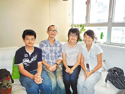 ■曾天衡(左一)、陸安琳(右一)、陳罡浟心(右二)參與監製及攝影的《女孩的一生》、《安娜》參加康城影展,三人與指導者Billy Lau合照。 本報記者覃卓嘉 攝