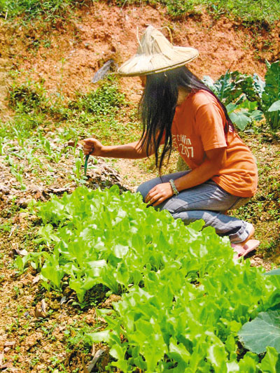 ■儘管受到外界質疑,但社員依舊按照既定的制度生活勞作。圖為夏艷飛在田間勞作。 本報福建傳真