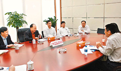 ■局長接訪日,廣東省地稅局黨組書記、局長吳昇文(左二)為納稅人解難釋疑。覃干樂 攝