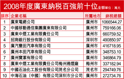 註:1、本排行榜按照同一地區獨立納稅標準來篩選、統計和排名,不對母、子公司和總、分支機構納稅額進行合併與匯總。2、納稅總額為2008年度獨立納稅企業自身繳納的國內稅收直接收入總和,包括2008年度正常繳納入庫的稅款、稽查查補入庫的稅款和清理欠稅入庫的稅款;不包括代徵代扣和代扣代繳的個人所得稅、預提所得稅及其它稅收收入;不包括增值稅免抵調庫收入、海關代徵稅收收入和稅務部門依法徵收的各種規費等非稅收入;剔除了當年度辦理的正常退庫數。