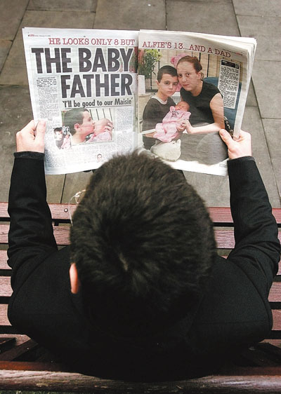 英國13歲少年帕滕當上爸爸的新聞終於真相大白!基因測試證實,帕滕並非女友尚特爾於本年2月誕下的女嬰梅茜生父,「經手人」是另一少年巴克。