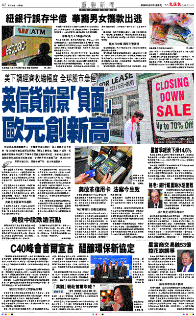 美國聯邦儲備局前日公布上月底決策例會的紀錄,由於首季經濟下滑6.1%,預測全年美國經濟將收縮1.3%至2%,較2月份預測的0.5%至1.3%進一步下調。聯儲局同時預測美國失業率將繼續攀升,可能達9.6%。美國失業率目前處於25年來最高的8.9%。
