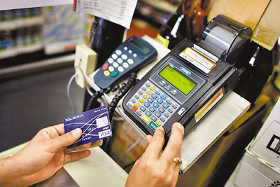■加州一個商舖用信用卡收款機過數。 法新社