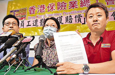 【本報訊】(記者 聶曉輝)星輝保險涉嫌偽造存款收據並出現經營問題,早前被高等法院頒令臨時清盤,約40名員工前途未卜,工會估計員工一旦全被解僱,涉及補償達300萬元。4名員工日前已接獲臨時清盤人的解僱通知,需在一個月後離職,卻不獲遣散費賠償。受影響員工不滿清盤人未履行承諾,保障勞方權益,擔心破產欠薪保障基金未能完全支付他們的應有賠償,令他們多年來的血汗化為烏有。協助員工的香港保險業總工會要求保險業監理處動用星輝2億元保證金,賠償受影響員工。