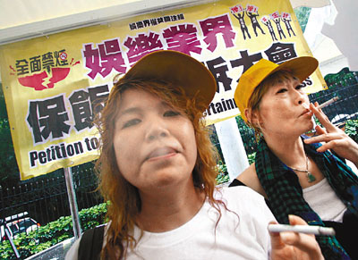 娛樂界權益關注組主席陳潤蓮表示,他們所做的調查顯示,近9成娛樂場所的客人是煙民,全面禁煙會令他們經營困難,要求將室內全面禁煙的時間押後1、2年,商討其他措施,例如發煙牌,「讓我們選擇做吸煙或非吸煙場所,顧客或員工都可以有選擇。」