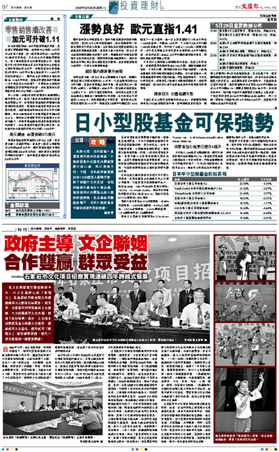 在今年5月12日舉行的2009年石家莊市文化項目招商簽約儀式上,共有33個各具特色的文化項目成功招商,簽約額高達8.26億元。這是石家莊市第四次舉辦大規模的文化項目招商活動,項目的簽約額也由2006年的1173萬元、2007年的2340萬元成功實現超億元大跨越,2008年達到了7.3億元,今年更是較去年增幅近1億元。