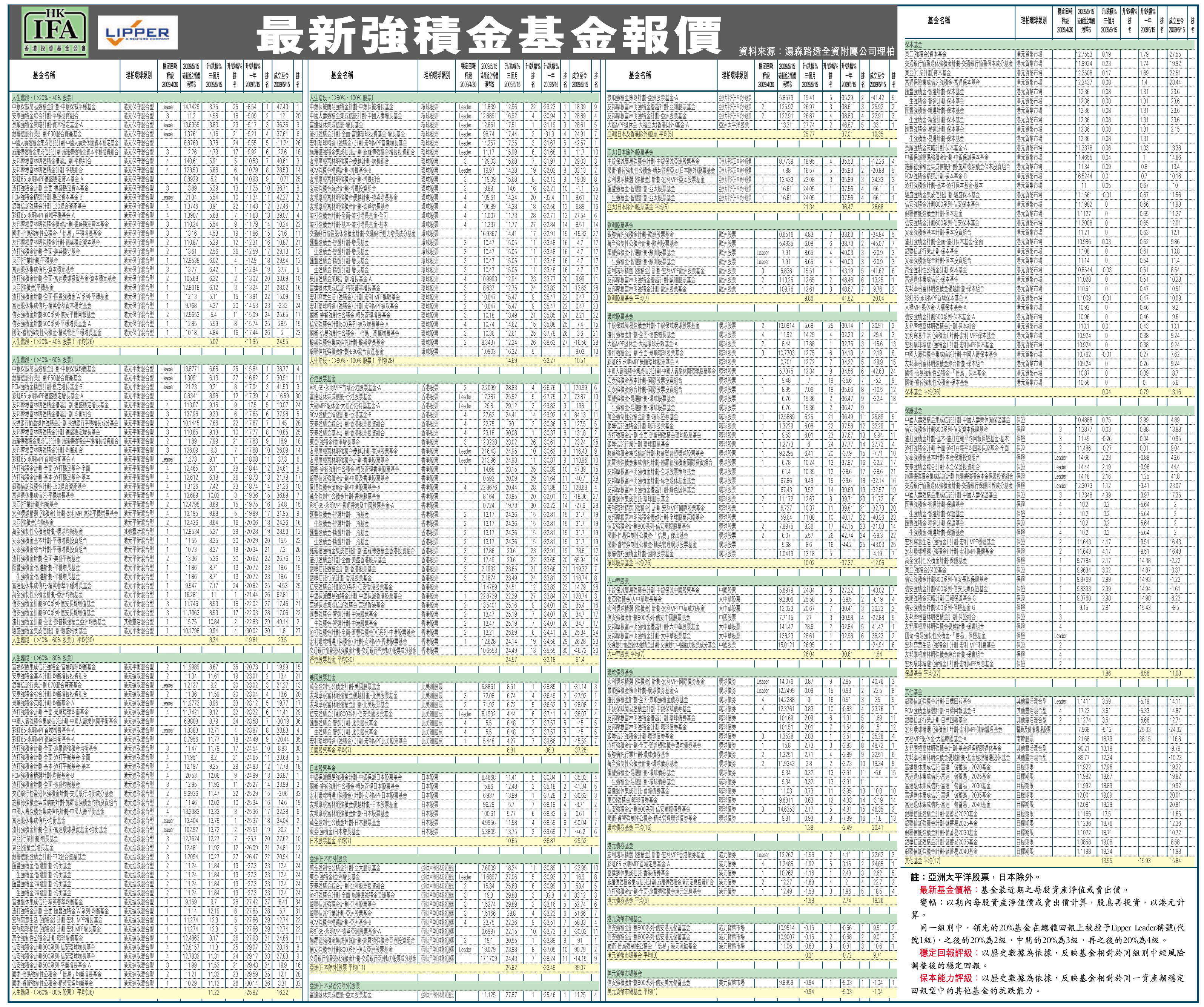 最新強積金基金報價(資料來源:湯森路透全資附屬公司理柏)