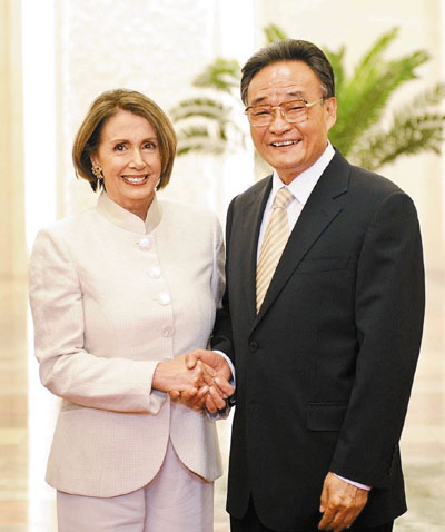 ■全國人大常委會委員長吳邦國會見佩洛西。 新華社