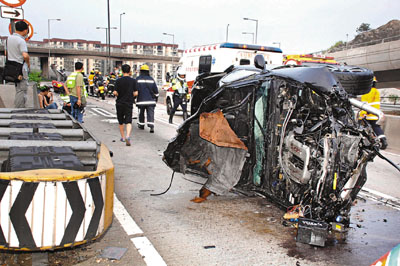 ¡@®×±¡«ü¥X¡A2008¦~8¤ë10¤é²M±á5®É³\¡A43·³ªº³Q§i¼Ú§Ó©ú¾r¾p¤@½ø¶]¨®¡A¥H°ª³t¦æ¸g§e²»¹DªF¦æ½u¡A«e®y¸ü¦³¤@¦W¤k¼«È¡C·í¶]¨®Âà¤J§e²»¹DªF¦æªñ«C¤s¹D¥ªÃä¤@ÓÅs¦ì®É¡A¦]¶W³t¥¢±±·ÆL¡AÃM¶V¸ô¤¤¤À¹jÄæ¡AâªÅ¼²¦V¤À¹jÄæ¤Wªº¸ôµP©M¿O¬W¡A³Ì«á½Ä¦V§e²»¹D¦è¦æ½u¡A²r¤O¼²¦V§e²»¹D¦è¦æ¨®½u¤Wªº¹J¨Æªº¤h¡Aªº¤h¥q¾÷«Àºa©÷(51·³)¤Î¨®¤W¼«È°Ï´°º³(35·³)·í³õ¦º¤`¡Cĵ¤è¦ôp¡A¶]¨®·N¥~®É¨®³t¬°¨C¤p®É115¤½¨½¡A¦Ó®×µo¸ô¬qªº¨®³t¨î¬°70¤½¨½¡C