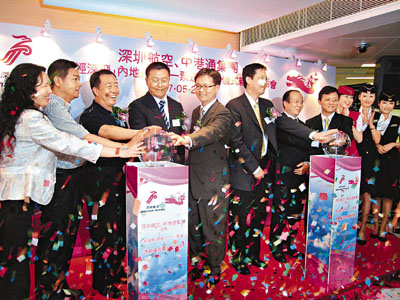 ■深圳航空與中港通集團昨推出「經深飛一票通」航班服務,把直通巴車票與機票捆綁銷售。本報記者嚴敏慧 攝