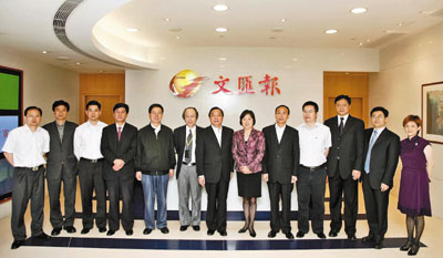 國務院新聞辦主任王晨(中)、六局局長馮希望、副局長郭利群一行,昨日在中聯辦宣傳文體部副部長司錦泉陪同下訪本報,受到本報副社長韓力、總編輯王伯遙、總經理顧行偉的熱情歡迎和接待。雙方在會面中進行了親切的交流。與會的還包括國新辦處長金晴中、倪建周,副處長謝應君,中聯辦宣文部傳媒處處長彭健恆,以及本報副總經理康海峰、副總編輯徐可。 本報記者曾慶威 攝
