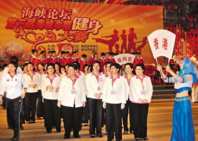 ■香港代表團49成員,參加福建泉州舉行的第3屆海峽巾幗健身賽。 本報泉州傳真