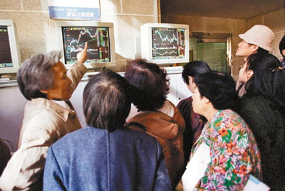 ■中國證監會推出了醞釀已久的新股發行改革辦法,引起了市場的廣泛關注。圖為在北京一家證券廳股民分析個股行情走勢。 本報資料圖片