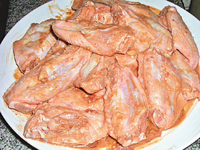 先用鹽水浸雞翼30分鐘除去雪味;