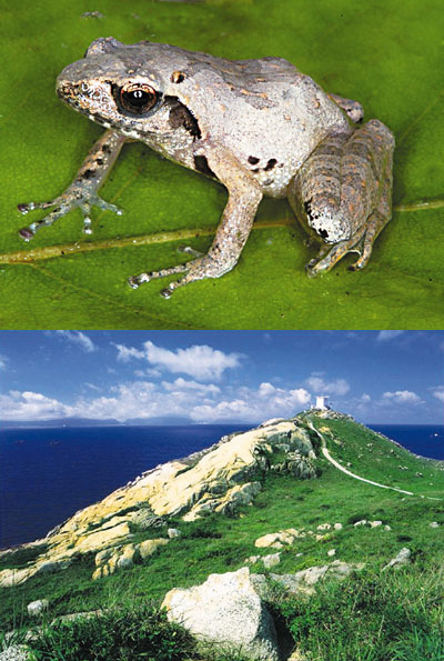 ■盧氏小樹蛙(上圖)在蒲台島(下圖)的棲息地暫未列入保護範圍。 資料圖片