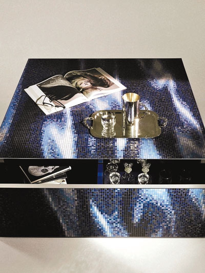 Tord Boontje利用馬賽克瓷磚鋪砌在茶几上,營造波光粼粼的自然景致,出神入化地展現了馬賽克瓷磚的可塑性。