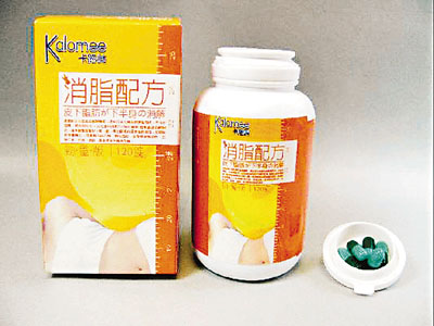 ■市面上有甚多減肥食品,但未必都有助健康,如這款「卡路美消脂配方勁量版 Kalomee」可能會引致嚴重的副作用,衛生署呼籲市民不要購買或服用。圖片由政府新聞處提供