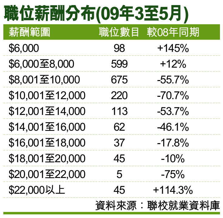 職位薪酬分布(09年3至5月) (圖)