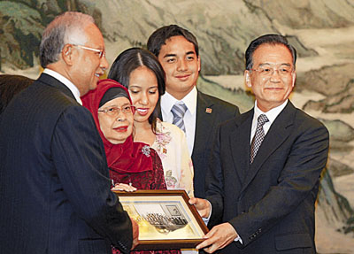 納吉此次訪華正值中馬建交35周年,也是他今年4月就任總理後首次訪問東盟以外的國家。1974年,納吉的父親敦拉薩總理對中國進行歷史性訪問,實現了中馬建交。會見中,溫家寶對納吉一家兩代人為中馬關係發展所作的寶貴貢獻表示了高度讚賞。