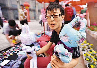 ■09中央財政預算將安排就業資金420億元。圖為大學生創意市集。 新華社